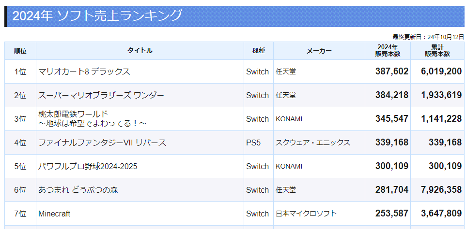 2024年、国内で最も多く売れているパッケージ版ゲームは「マリオカート8デラックス」 ←終わりだよゲーム業界 2024/10/17 Y速報 " " 1: 2024/10/17(木) 08:04:52.43 ID:DLyGrsupd いや何年前のゲームだよ… 続きを読む Source: Y速報