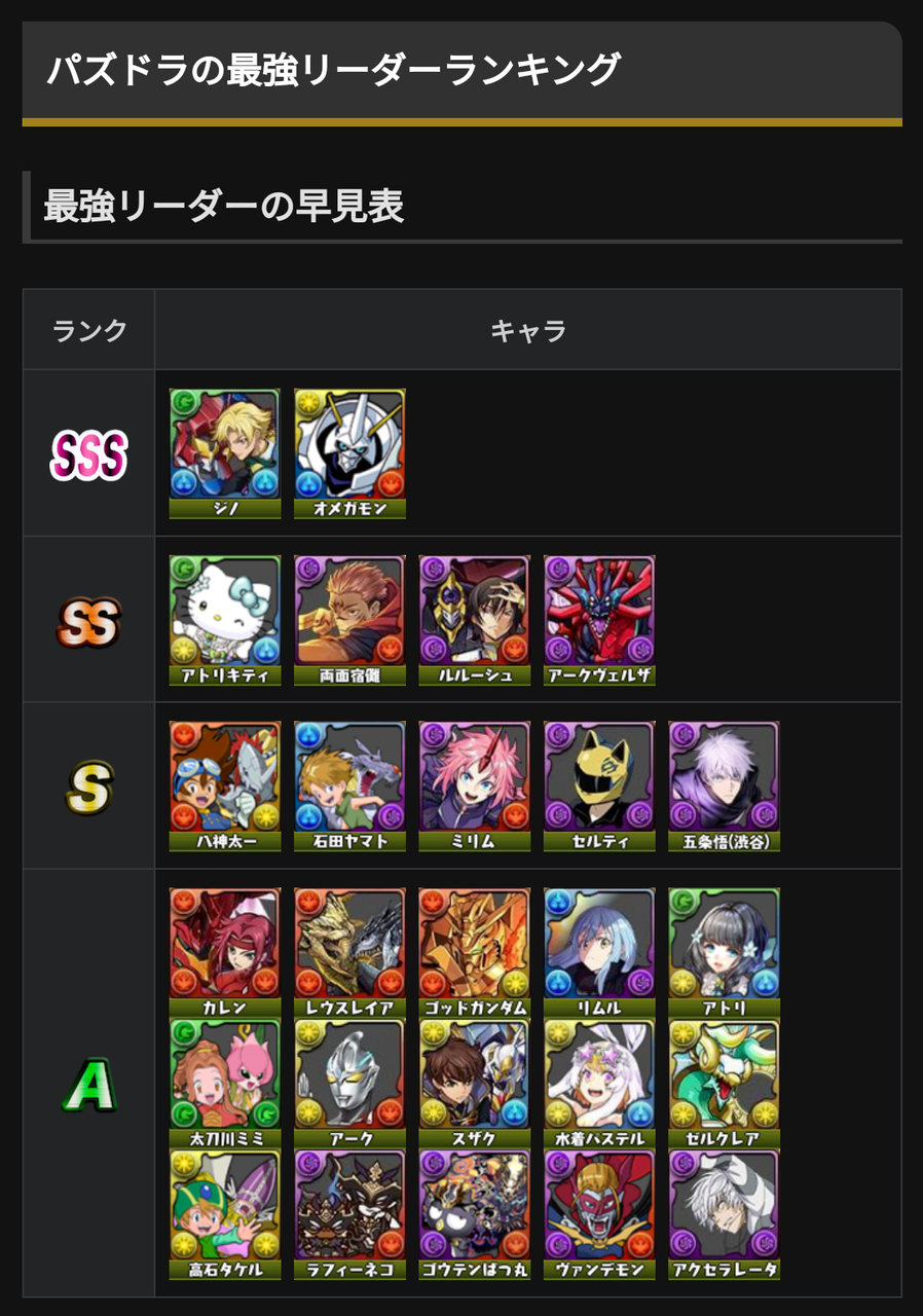 【パズドラ】オメガモンの登場でSSSランク廃止になってて草 2024/10/23 オーガch.-パズドラ攻略まとめ速報 " " 594: おーがちゃんねる 2024/10/22(火) 17:32:27.43 もっと攻めたランキングが見たいよね 続きを読む Source: オーガch.-パズドラ攻略まとめ速報