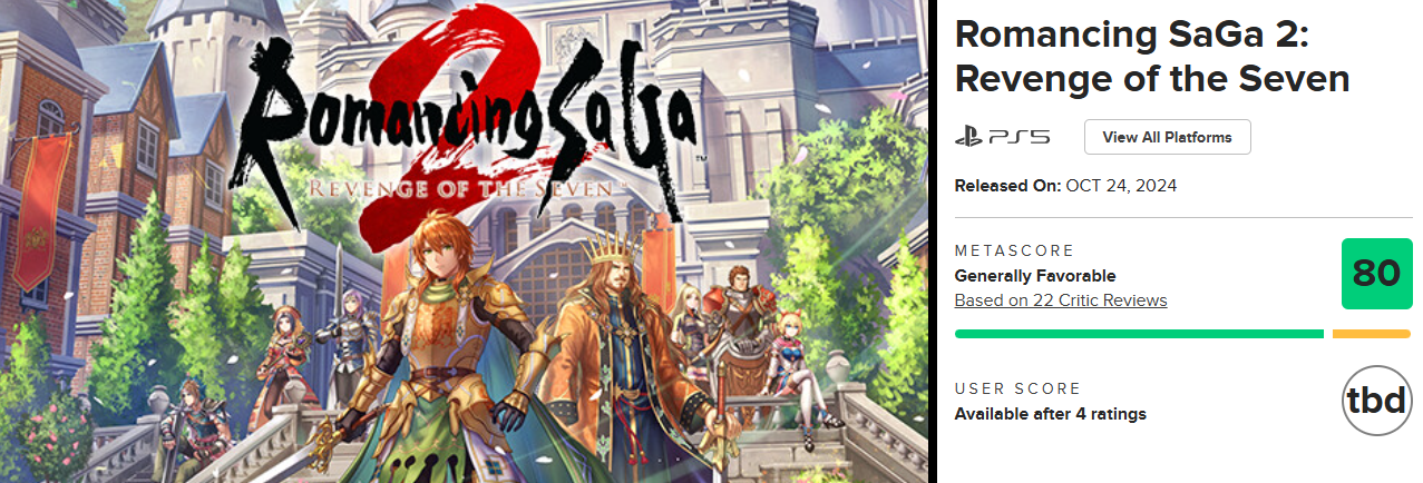 ロマサガ2リメイク、メタスコア80点 2024/10/25 Y速報 " " 1: 2024/10/24(木) 18:29:23.64 ID:B7q4PTewa よいか? ロマンシング サガ2 リベンジオブザセブン -Switch スクウェア・エニックス 2024-10-24 続きを読む Source: Y速報