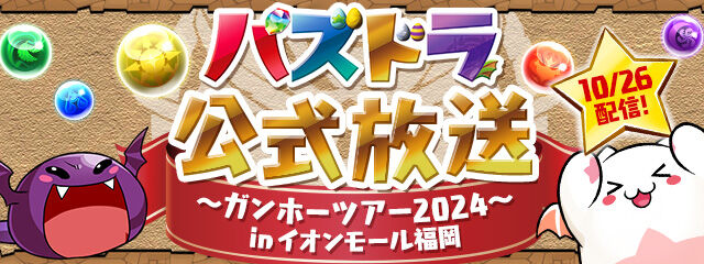 10/26(土)の「ガンホーツアー2024 イオンモール福岡」にて、パズドラ公式生放送の実施が決定!