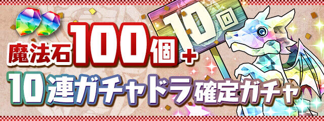 「魔法石100個+10連ガチャドラ確定ガチャ」(8,000円)を購入すると「魔法石100個」、「10連ガチャドラ確定ガチャ」が入手できる!