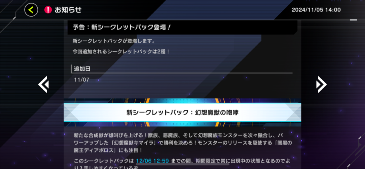 【速報】シークレットパック「幻想魔獣の咆哮」「溢れるほどに甘い夢」を11/7追加