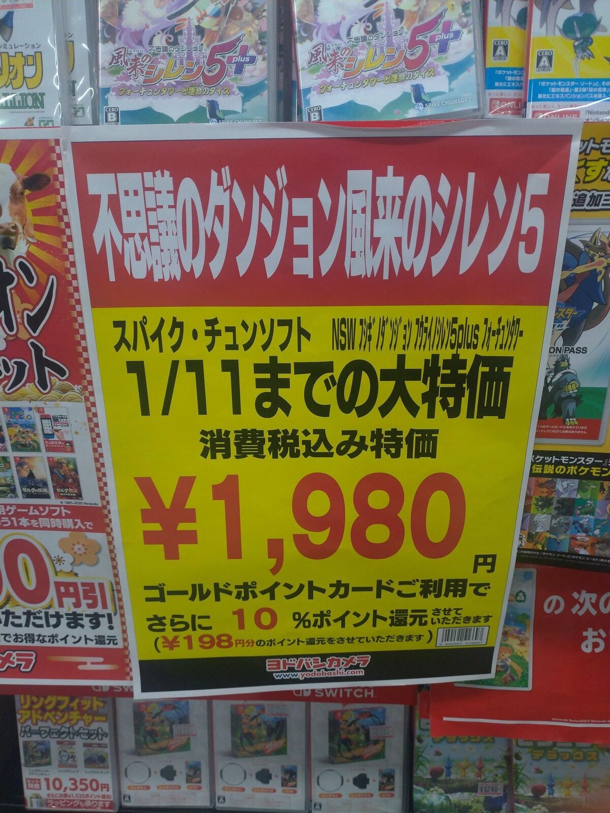 Switch『風来のシレン5+』新品6割引の1980円!!これ最安か? 2021/1/3 Y速報 " " 1: 2021/01/02(土) 16:26:36.08 ID:vsKTf8gvr 定価4378円→新品1980円(198ポイント) 続きを読む Source: Y速報