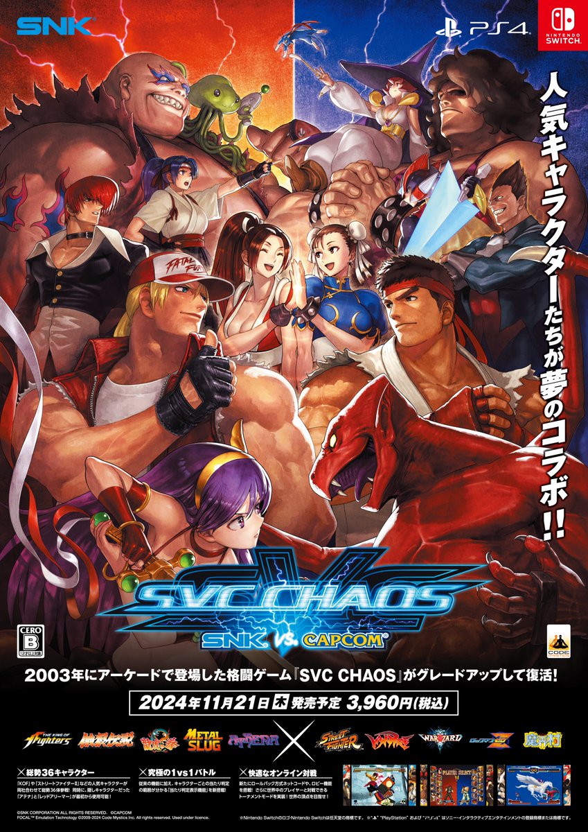 11/21本日、格闘ゲーム『SNK VS. CAPCOM SVC CHAOS』パッケージ版発売 2024/11/21 PS5速報! " " 2003年にアーケードで登場した格闘ゲーム『SVC CHAOS』がグレードアップして復活した 『SNK VS. CAPCOM SVC CHAOS』 11/21本日パッケージ版が発売です。 ※DL版は7/22発売済み 続きを読む Source: PS4速報!