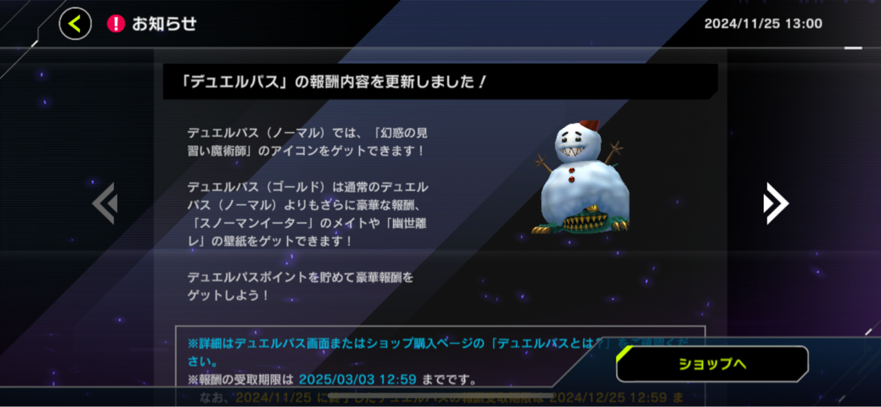 【速報】デュエルパスの報酬内容を更新 「スノーマンイーター」メイト他