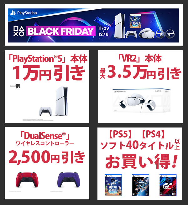PS5が1万円引き!ノジマのBLACK FRIDAY 2024/11/26 Y速報 " " 1: 2024/11/25(月) 10:49:15.16 ID:eoBZ9rB70 他にもPSVR2が最大3万5千円引き、DualSenceが2500円引き等 オンラインなのでで瞬殺必至 続きを読む Source: Y速報
