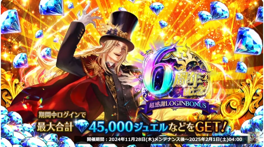 【生放送】【ロマサガRS】6周年記念ログインボーナスで45000ジュエルが配布!