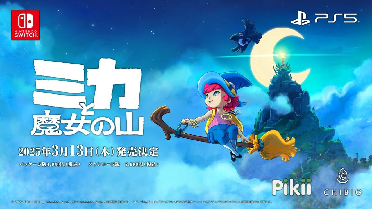 見習い魔女のミカが荷物を届けます!ほうきに乗って自由に飛び回り、心温まる冒険が楽しめる「ミカと魔女の山」✨2025年3月13日(木)にNintendo Switch、PS5で発売決定🎊癒しと成長の物語をお楽しみに!