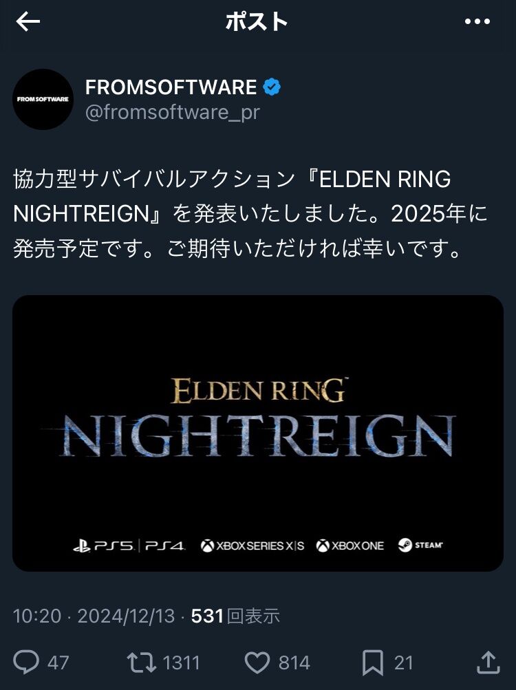 エルデン新作「協力型サバイバルアクション」だった 2024/12/14 Y速報 " " 1: 2024/12/13(金) 10:22:48.44 ID:lnc1YIdl0 続きを読む Source: Y速報