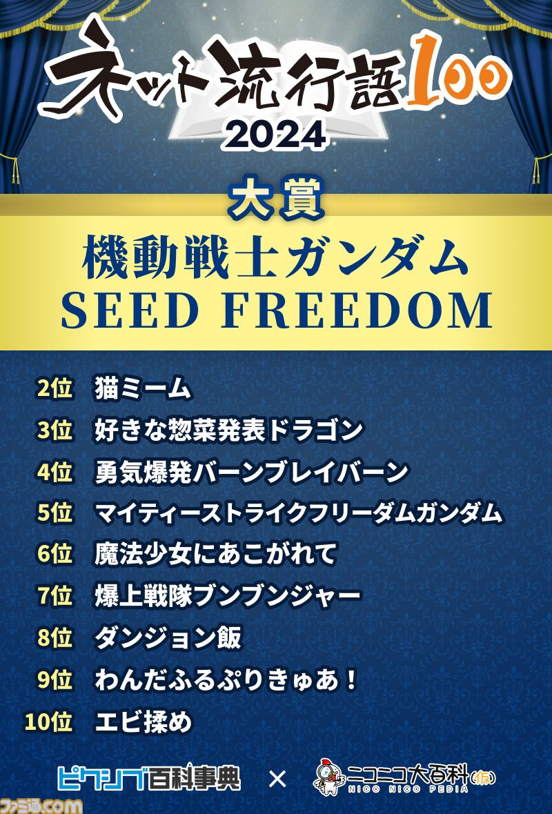 『機動戦士ガンダム SEED FREEDOM』が“ネット流行語100”年間大賞に決定 2024/12/19 Y速報 " " 1: 2024/12/18(水) 22:05:47.84 ID:TdokBYYnr https://www.famitsu.com/article/202412/27903 続きを読む Source: Y速報