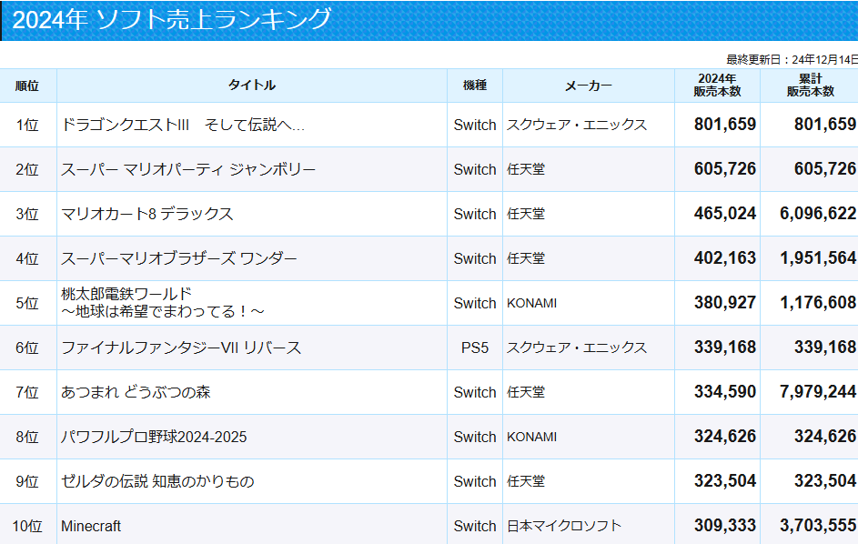 【悲報】2024年間トップ10、Switchランキングになりそう 2024/12/19 Y速報 " " 1: 2024/12/18(水) 11:01:30.44 ID:E+Pymhjz0 続きを読む Source: Y速報