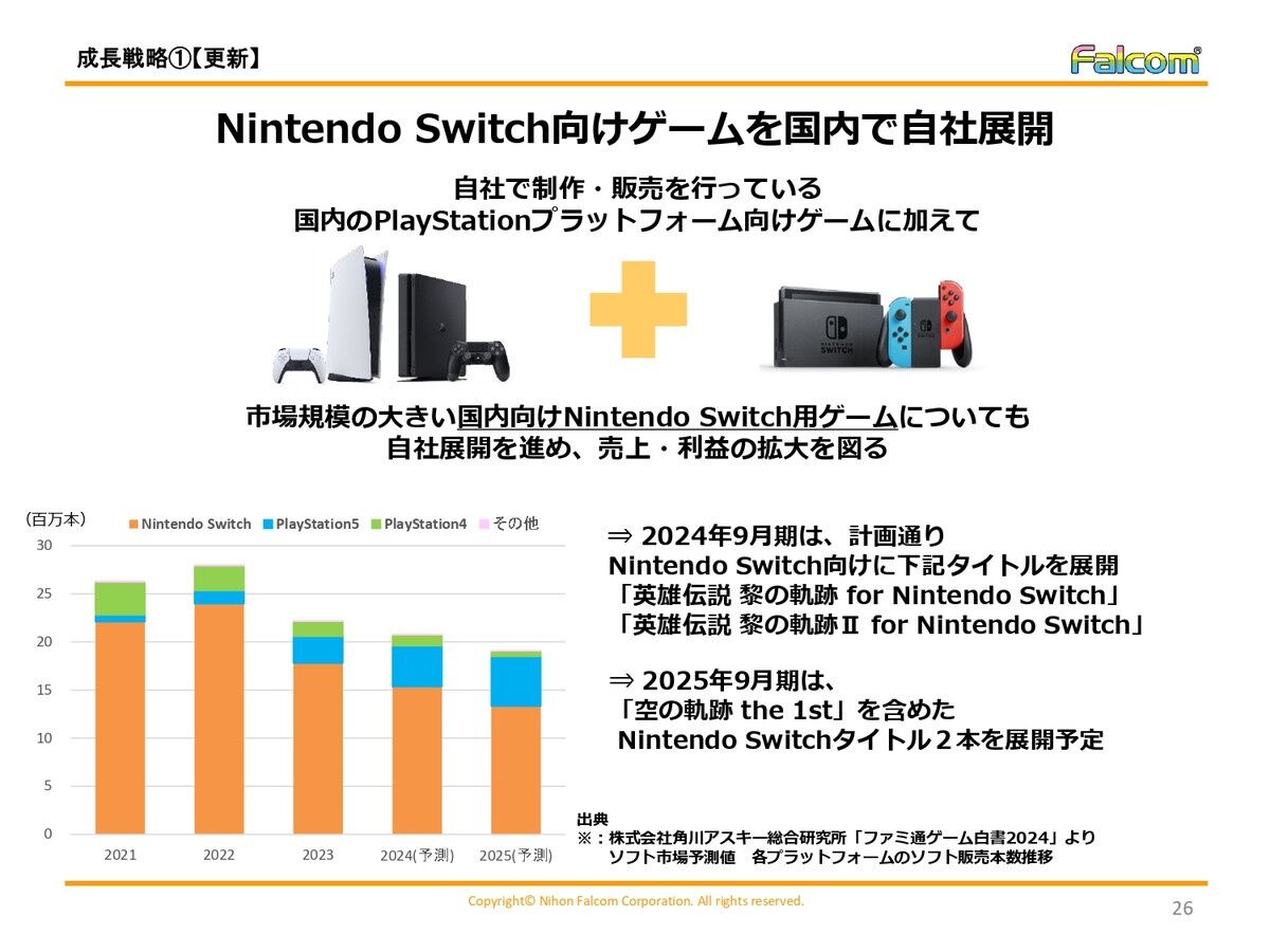 日本ファルコム、成長戦略の進捗状況をアップデート…開発強化で年4~5本の新作リリース体制へ、Switch向けの取り組み強化、グッズなどマルチユース展開も