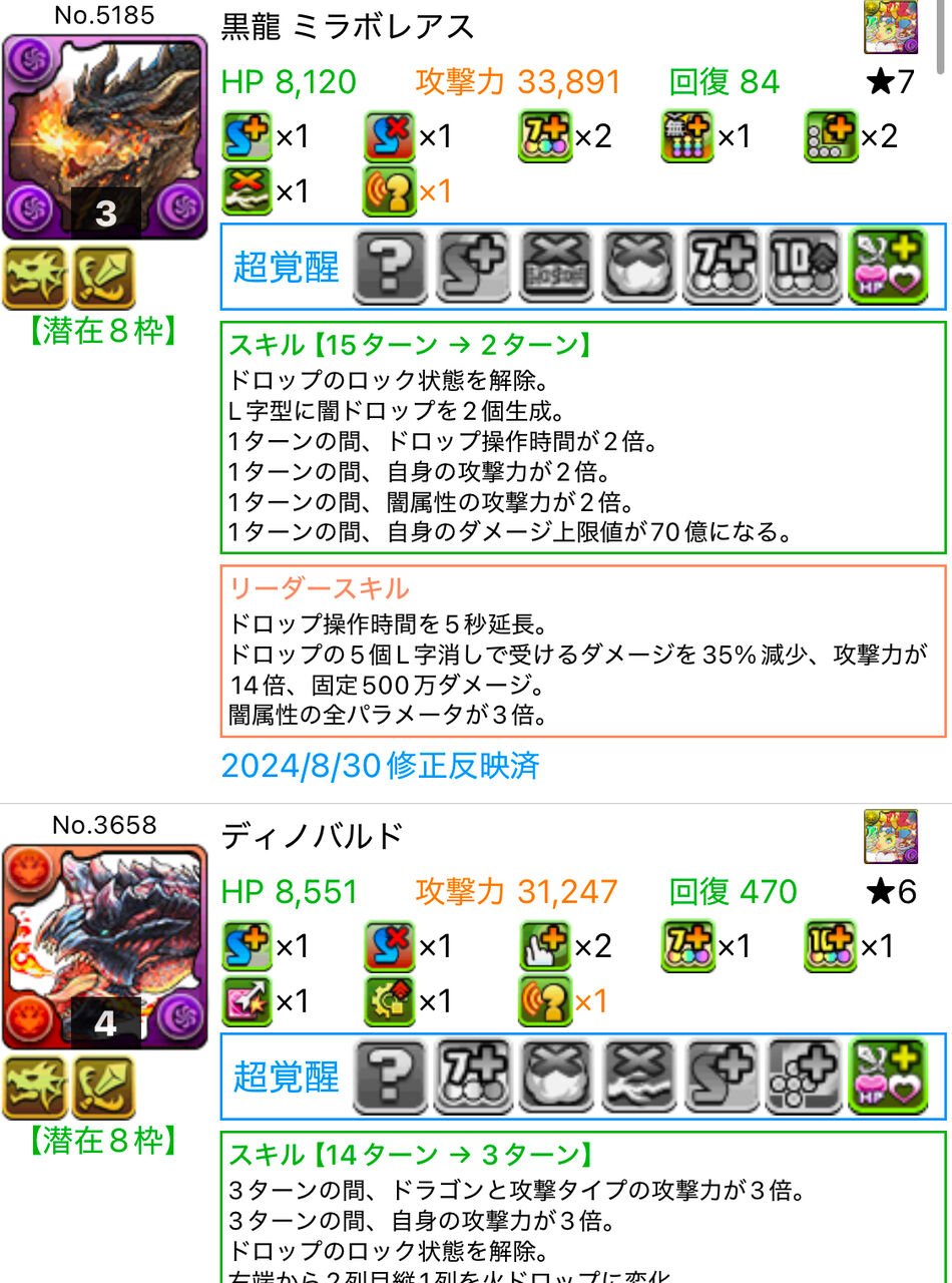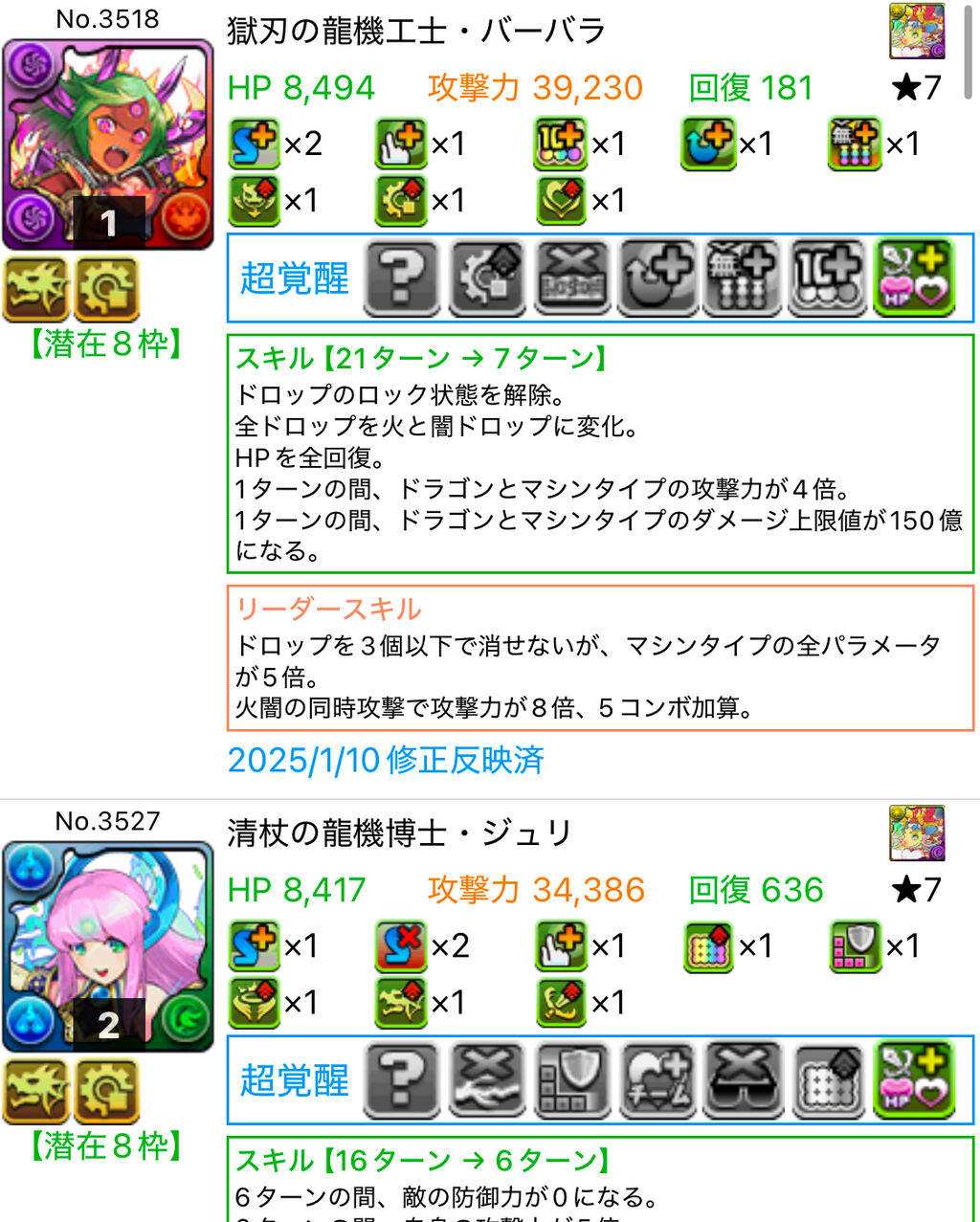 【パズドラ】バーバラの攻撃力ぶっ壊れで草、ミラボレアス終了のお知らせ 2025/1/13 オーガch.-パズドラ攻略まとめ速報 " " 359: おーがちゃんねる 2025/01/12(日) 14:20:33.40 餅集めで正月ダンジョン上級をポチポチするためにBOXの攻撃力高い奴を調べたらバーバラの攻撃力がめちゃくちゃ高くなってたジュリも高くなっててミラボレアスが非変身だと攻撃力ランキング3位に落ちてる 続きを読む Source: オーガch.-パズドラ攻略まとめ速報