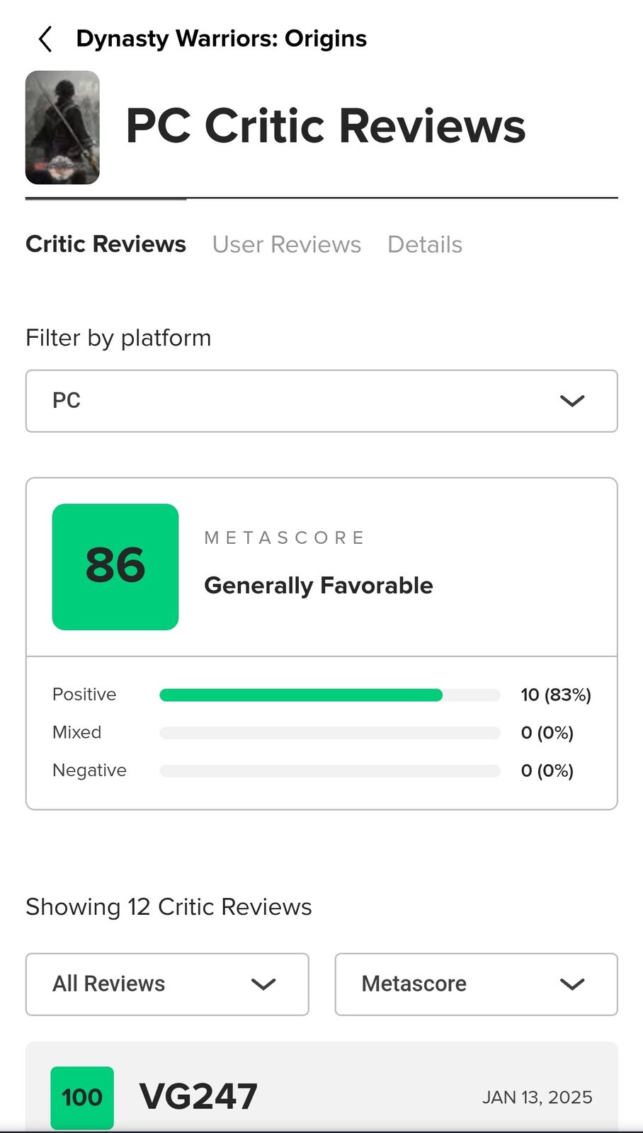 真・三國無双オリジンズメタスコア86と高得点 2025/1/14 Y速報 " " 1: 2025/01/13(月) 20:54:39.66 ID:YVzFJYDj0 すごいわ 続きを読む Source: Y速報