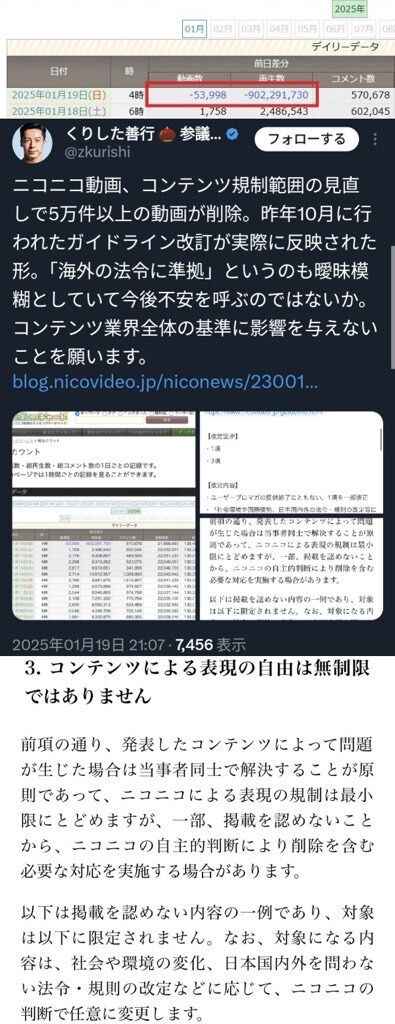 【悲報】ニコニコ動画 有害コンテンツ大量削除 2025/1/21 Y速報 " " 1: 2025/01/20(月) 07:13:13.07 ID:iFfvAquM0 1日で5万4000本の動画(再生数9億)を削除😢 画像 続きを読む Source: Y速報