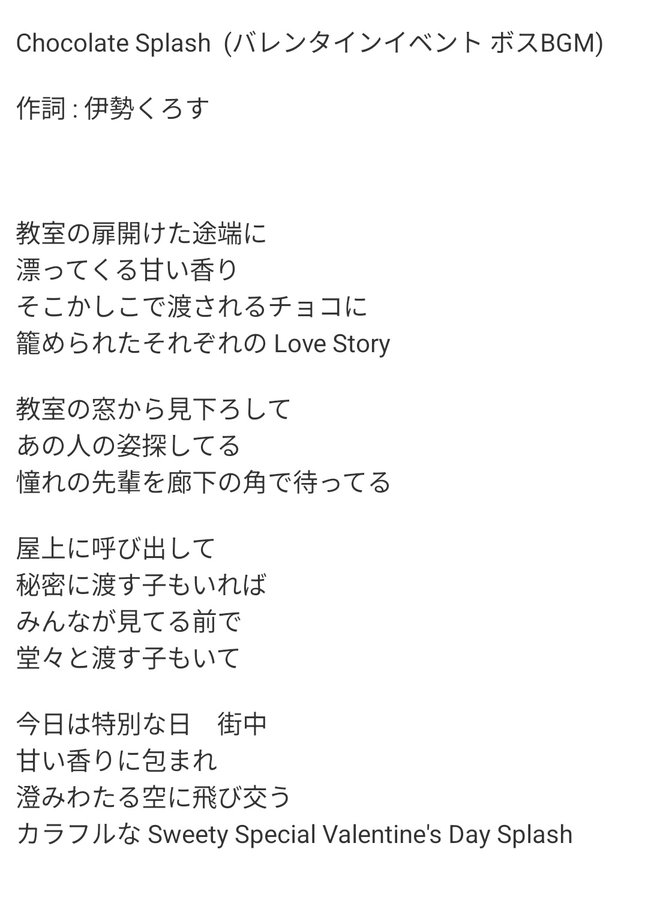 バレンタインイベントのBGMセット2のボスBGM「Chocolate Splash」の歌詞を作詞しました!