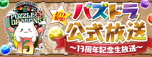 【速報】2/17(月)「パズドラ公式放送〜13周年記念〜」キタ━(゚∀゚)━!!【公式】 2025/2/7 オーガch.-パズドラ攻略まとめ速報 " " 続きを読む Source: オーガch.-パズドラ攻略まとめ速報