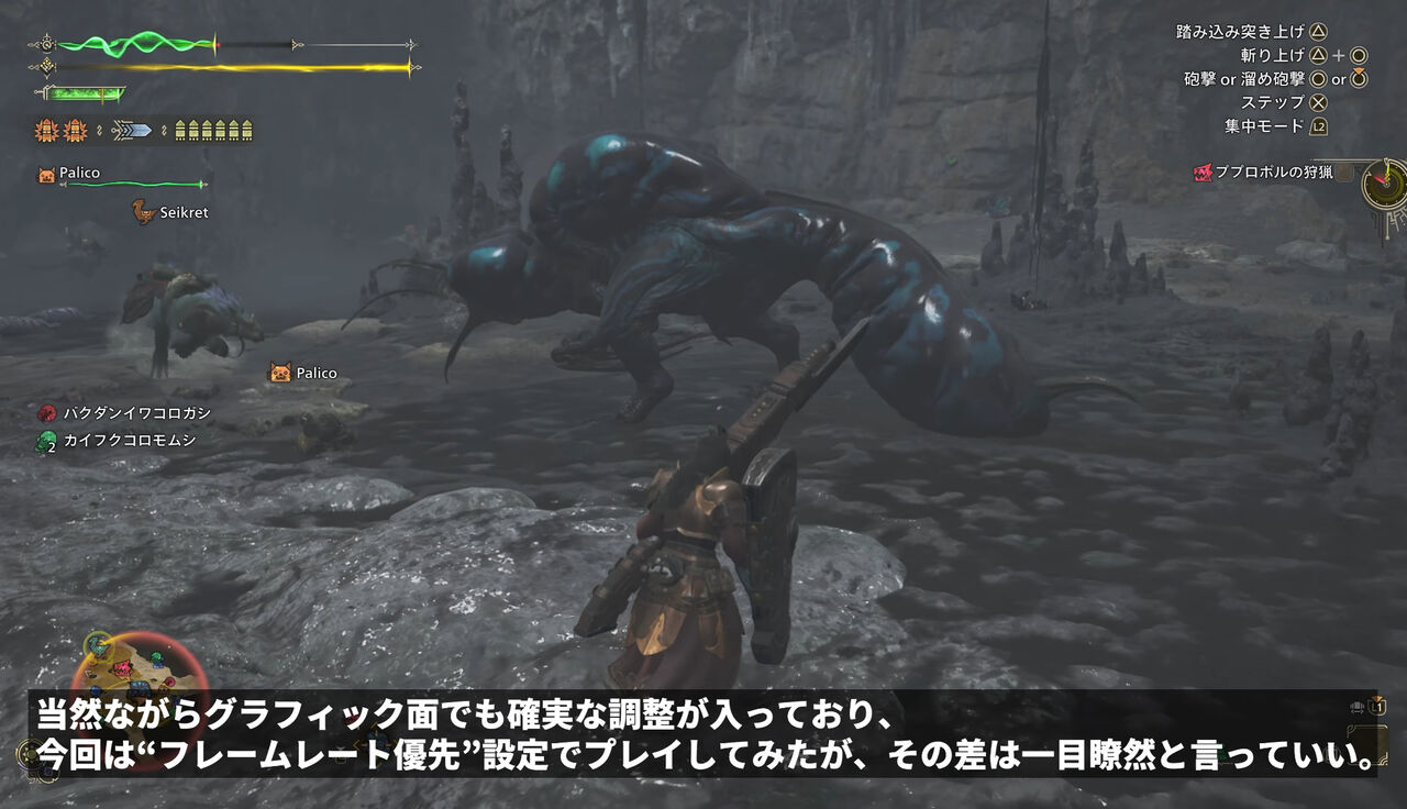 今回の試遊では一律「フレームレート優先」でプレイし、本記事内の画面写真も「フレームレート優先」の4K解像度出力で収録した動画から切り出したものである。