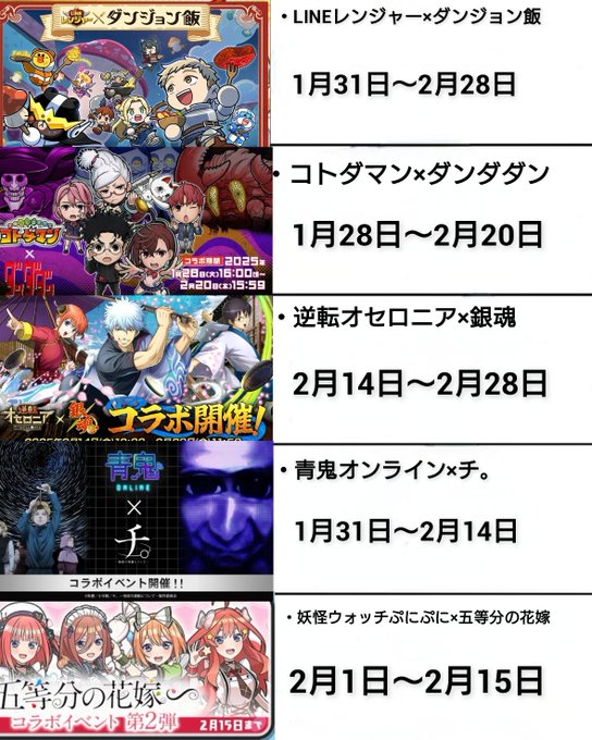 ここらの作品はコラボはかなり厳しいかと💦