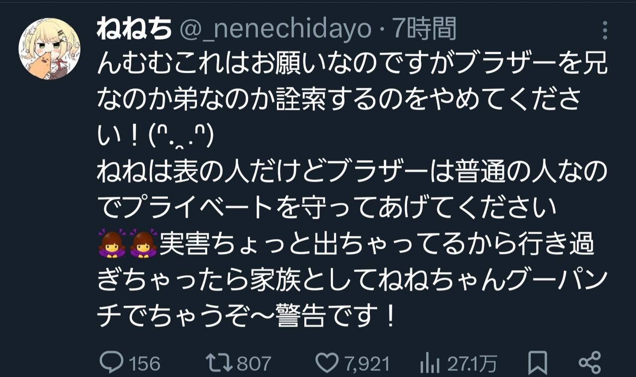 人気Vチューバーさん「兄弟が兄か弟なのかを詮索するのはやめて!」 2025/2/13 ゲーム実況者速報 " " 1: ゲーム実況者速報 2025/02/13(木) 08:06:58.699 ID:gBCeEpjH0 ストーカーかよ 続きを読む Source: ゲーム実況者速報
