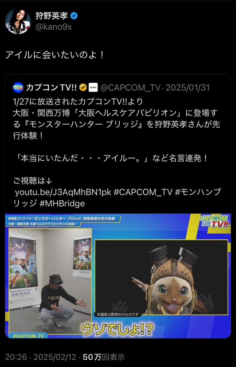 カプコン芸人・狩野英孝さん「大阪・関西万博行きたいなぁ」 2025/2/16 ゲーム実況者速報 " " 1: ゲーム実況者速報 2025/02/13(木) 19:15:45.95 ID:cgYA72aP0 続きを読む Source: ゲーム実況者速報