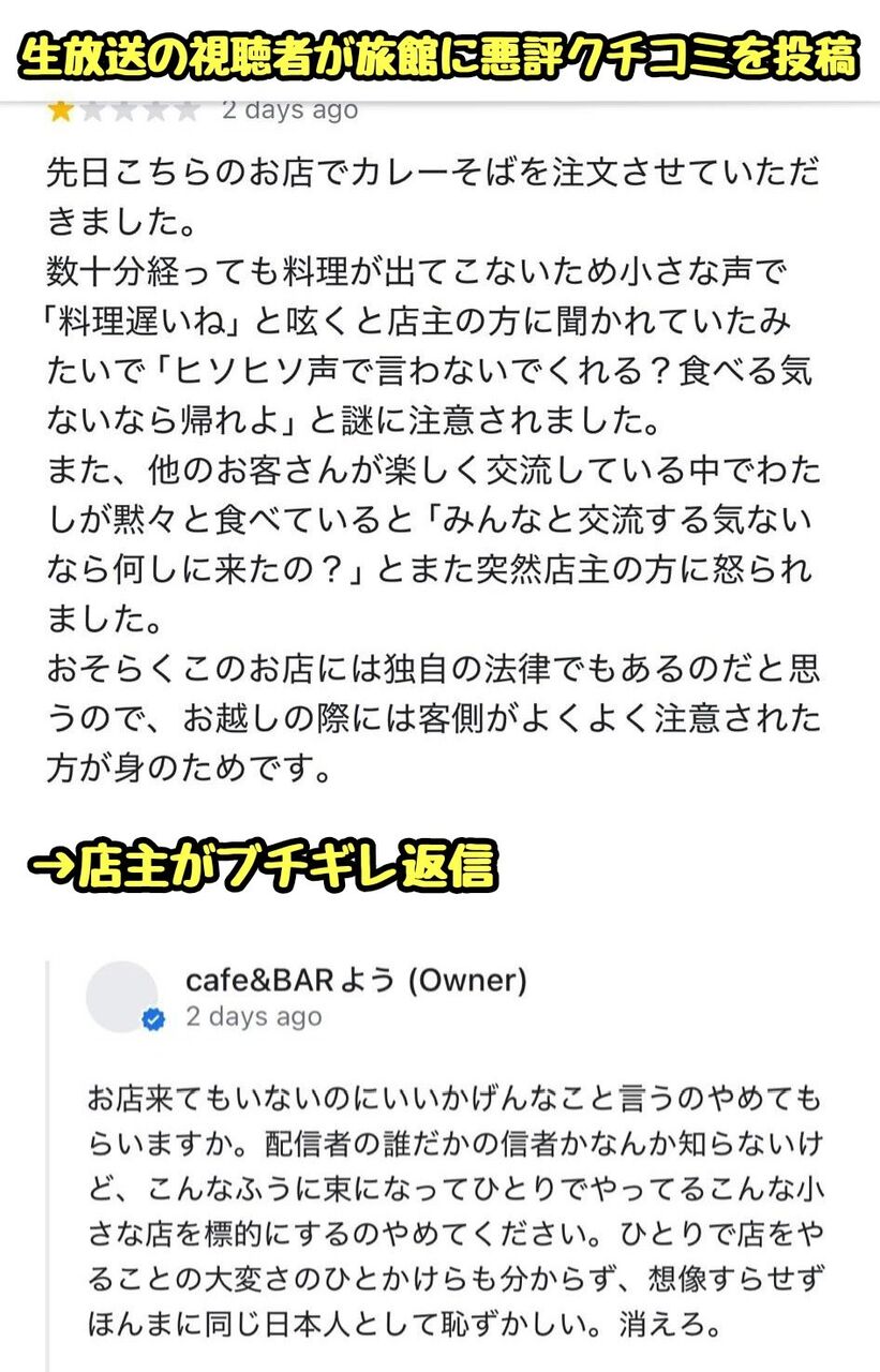 ニコ生主「注文した料理が30分以上待っても出てこないんだけど(ボソッ)」→発言が店主に聞かれ店主激怒→数日後、ニコ生主に電話がかかってきてヤバすぎる展開に…… 2025/2/19 ゲーム実況者速報 " " 1: ゲーム実況者速報 2025/02/19(水) 10:38:18.615 ID:hDOeoKZn0 このお店なんだけど 続きを読む Source: ゲーム実況者速報