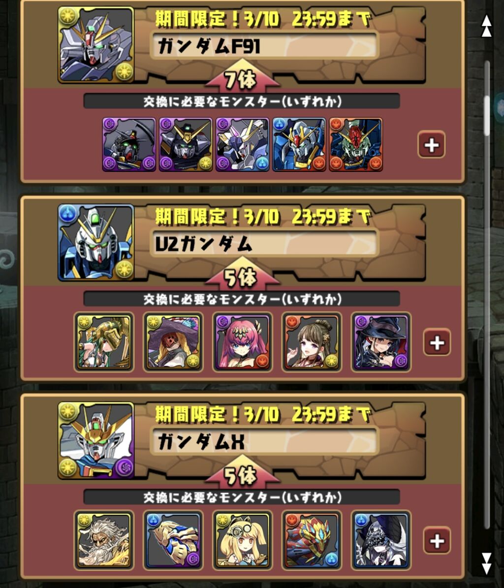 【パズドラ】「ジークアクス」「赤いガンダム」などの交換条件キタ━(゚∀゚)━!!【反応まとめ】 2025/2/20 オーガch.-パズドラ攻略まとめ速報 " " 交換弾10体:ジャスティスガンダム 交換弾7体:ジークアクス、赤いガンダム、ガンダムF91 交換弾5体:V2ガンダム、ガンダムX、フォースインパルスガンダム、クスィーガンダム、マスターガンダム、シャア専用ザク、Zガンダム、ZZガンダム、ウイングガンダム、ガンダムエクシア、ガンダムバルバトス 続きを読む Source: オーガch.-パズドラ攻略まとめ速報