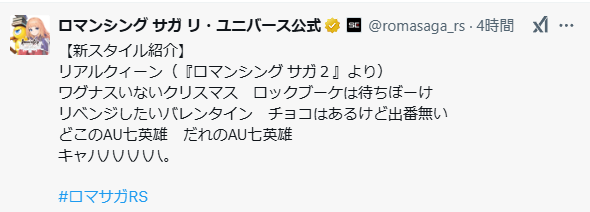【ロマサガRS】「リアルクィーン」の紹介文がすごい内容に… 2025/2/20 ロマサガRS攻略まとめ " " 266 名前ボストン速報:2025/02/20(木) 12:03:07.67 ID:q7l AUとコラボ? 続きを読む Source: ロマサガRS攻略まとめ