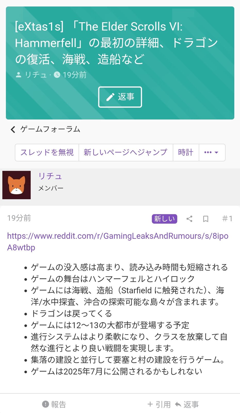 【朗報】TES6の詳細がリーク??舞台はハンマーフェルとハイロック。ドラゴンが復活など 2025/2/22 Y速報 " " 1: 2025/02/21(金) 21:50:50.49 ID:V7zJaWBg0 スカイリム2の詳細がリーク サブタイトルはハンマーフェル これは神ゲー確定です ソースはMSに関してめちゃくちゃ実績のあるスペインのリーカーのYoutubeな スペイン語だからわからんけど 続きを読む Source: Y速報