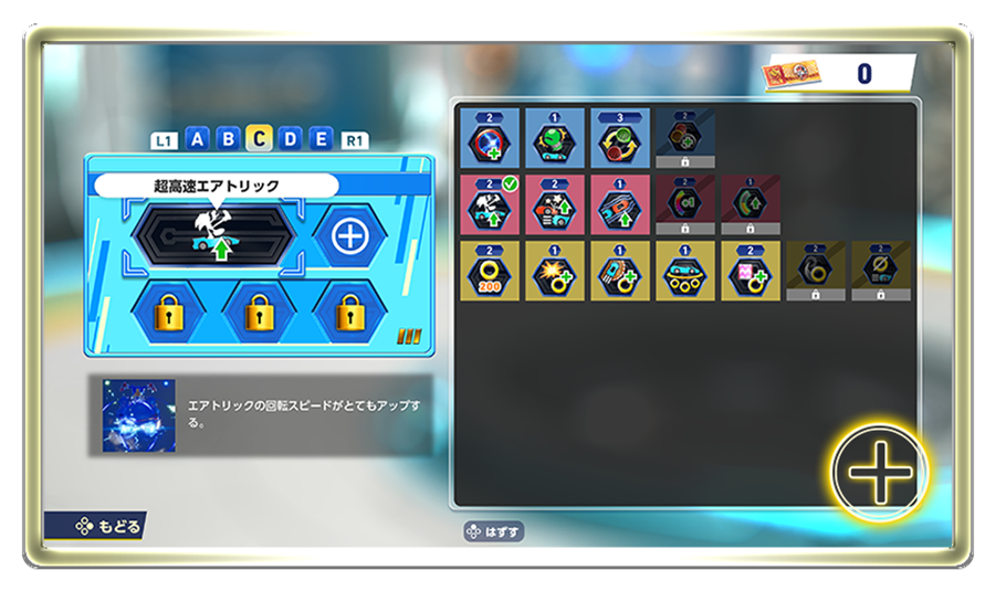 ・ガジェットにスロットが6個あり、好きなガジェットを組み合わせてマシンセッティングします。