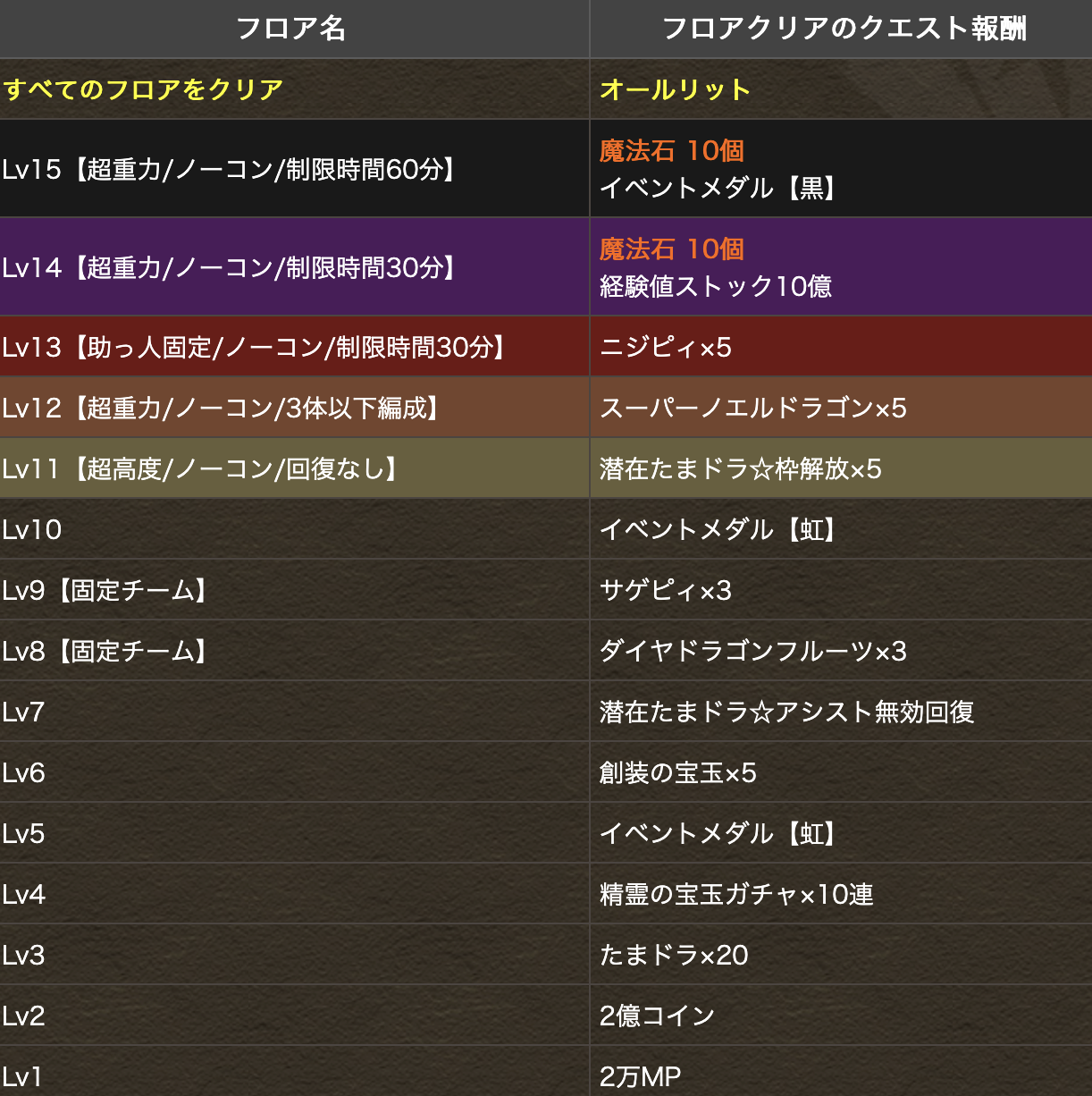 クエストレベル1ごとに「魔法石 5個」、最大レベル20で合計「魔法石 100個」ゲット!