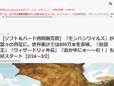 【爆死】モンハンワイルズさん、PS5版の国内初週売上がたったの60万本と判明する…… 2025/3/7 ゲーム実況者速報 " " 1: ゲーム実況者速報 2025/03/07(金) 02:13:37.38 ID:oAptkNgg0 どうして… https://www.famitsu.com/article/202503/35700 続きを読む Source: ゲーム実況者速報