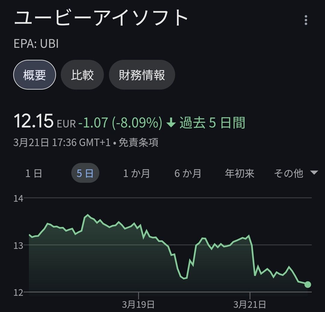【悲報】UBI、株価イーグルダイブ