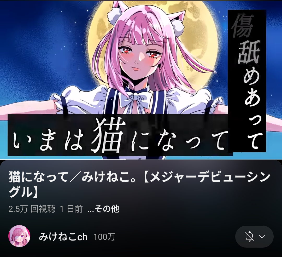 【悲報】みけねこさん、メジャーデビューMVを公開するも再生回数が伸びない…… 2025/3/28 ゲーム実況者速報 " " 1: ゲーム実況者速報 2025/03/27(木) 11:53:11.555 ID:aHrE+fi70 みんな聞いてあげよう 続きを読む Source: ゲーム実況者速報