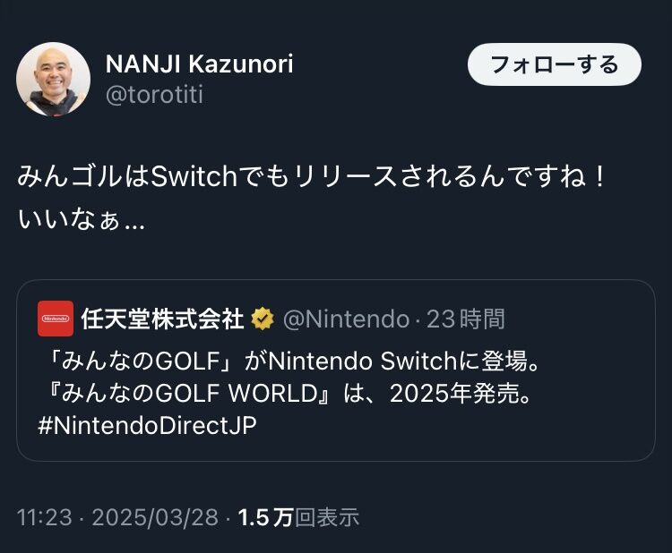 どこでもいっしょ作者「みんゴルはスイッチでもリリースされるんですね!いいなぁ……」 2025/3/30 ゲーム実況者速報 " " 1: ゲーム実況者速報 2025/03/28(金) 22:53:57.74 ID:s8CgeY4m0 出させてクレクレ 続きを読む Source: ゲーム実況者速報