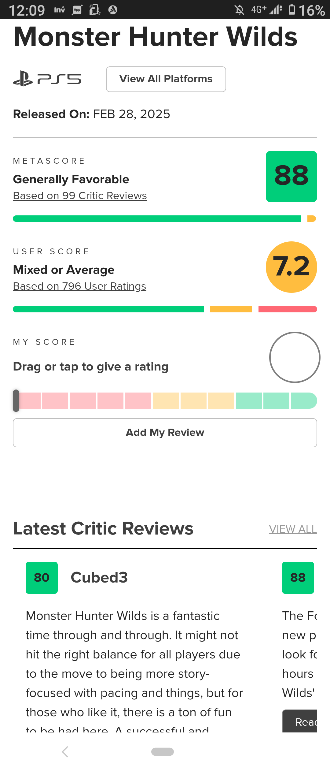 【悲報】モンハンワイルズさん、メタスコアが88点に下がってしまう…… 2025/4/1 ゲーム実況者速報 " " 1: ゲーム実況者速報 2025/04/01(火) 12:10:31.21 ID:vzYEBQyu0 どこまで下がるんだ… 続きを読む Source: ゲーム実況者速報