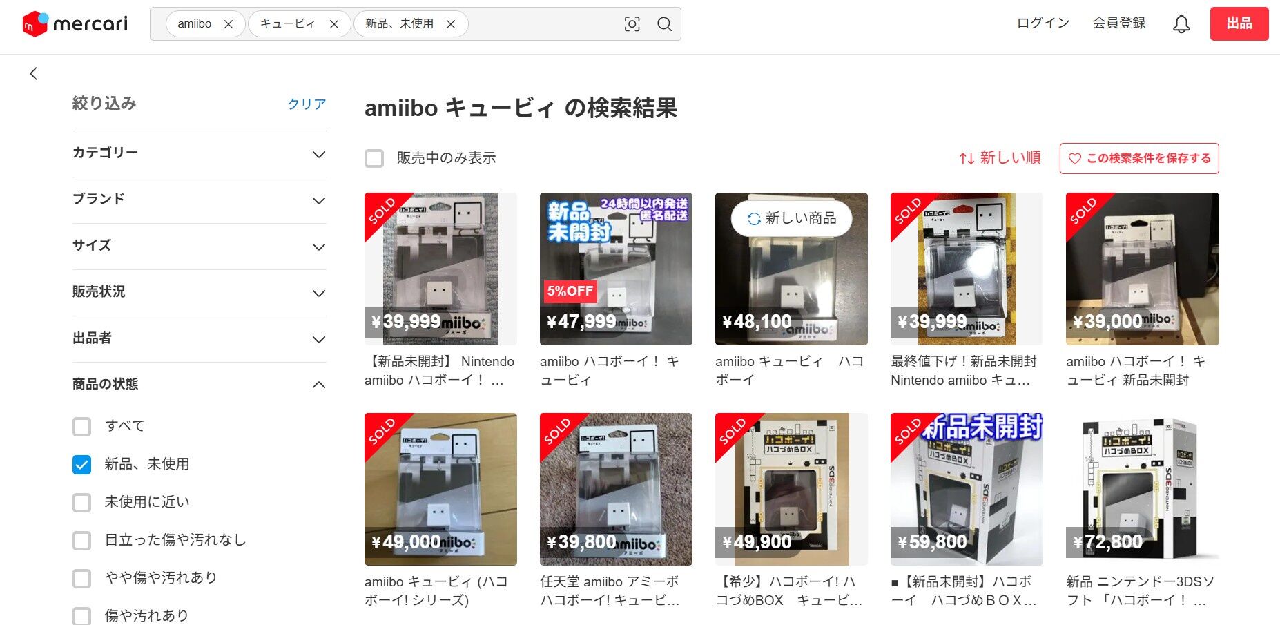 新品amiiboが39000~40000円で売れる(40000円を超えると売れ残る)