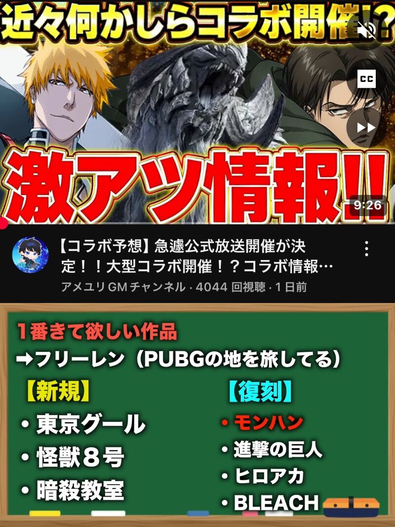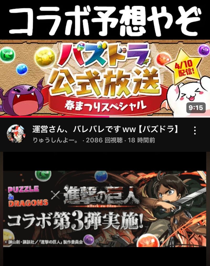 コラボ予想動画上げてるYouTuberのほとんどが「進撃来るかも」って言ってるんだがどう思う?