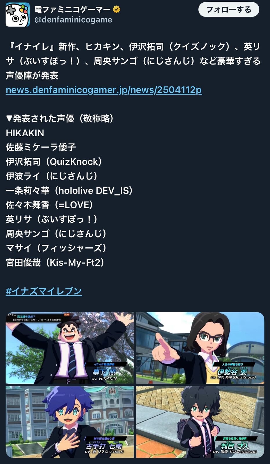 【朗報】“イナイレ”の声優陣、ガチで豪華すぎるWWWWWWWWWWWWW 2025/4/12 Y速報 " " 1: 2025/04/11(金) 22:17:21.04 ID:1q4Dfymn0 続きを読む Source: Y速報
