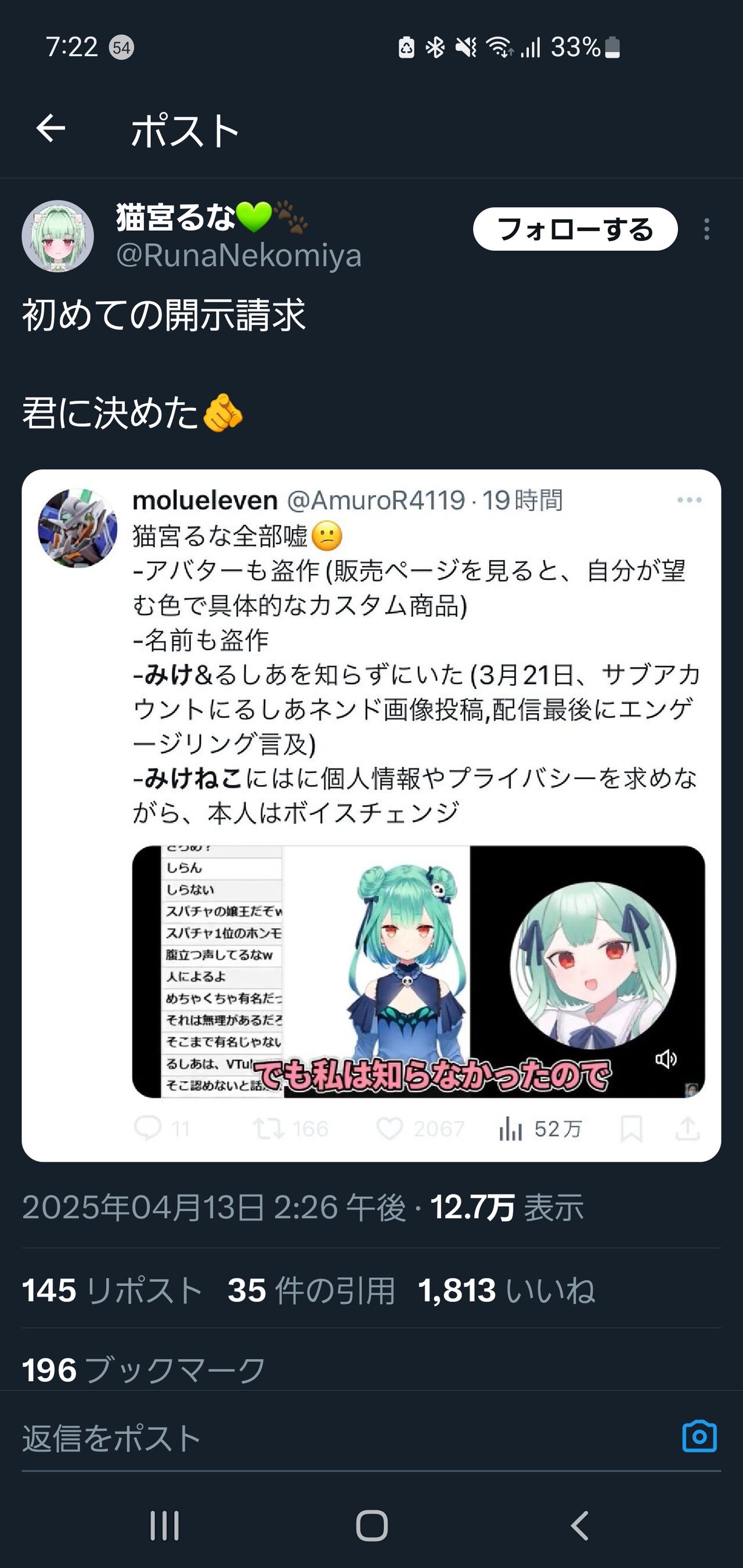 名前被りで炎上したVチューバーさん、アンチに対して開示請求を仄めかす…… 2025/4/14 ゲーム実況者速報 " " 1: ゲーム実況者速報 2025/04/13(日) 19:27:37.283 ID:wG139Ryr0 あっ 続きを読む Source: ゲーム実況者速報
