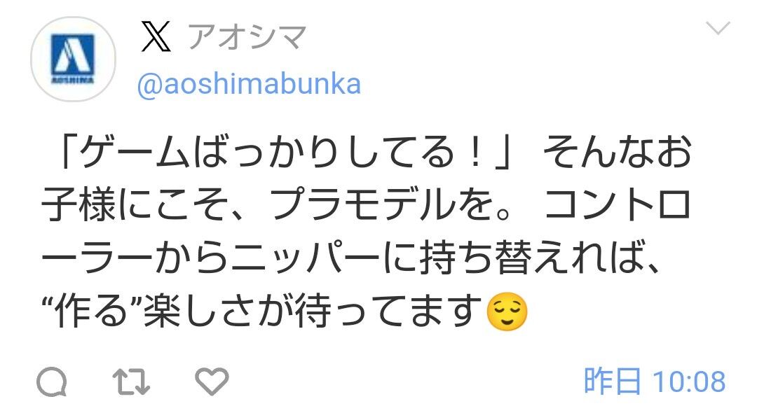 模型メーカー「ゲームばっかりしてる!そんなお子様にこそ、プラモデルを」だけで大炎上 ←SNS界隈怖すぎだろ・・・・ 2025/4/14 Y速報 " " 1: 2025/04/13(日) 22:38:03.39 ID:nyHT7WJd0 ↓ ↓ 続きを読む Source: Y速報