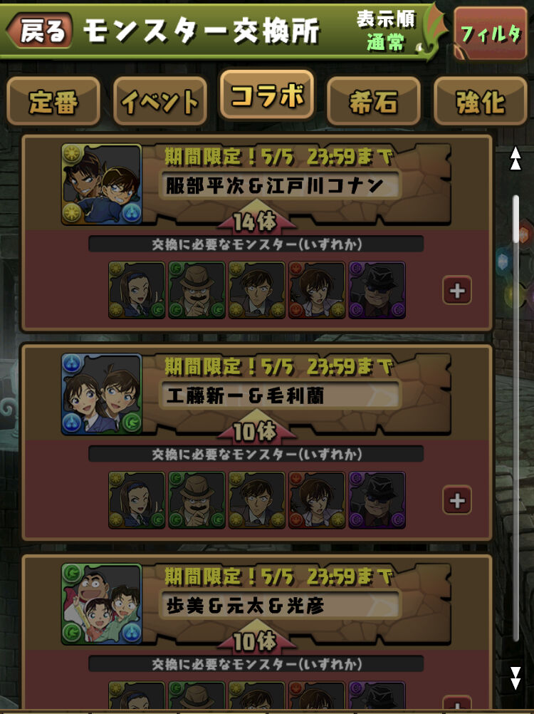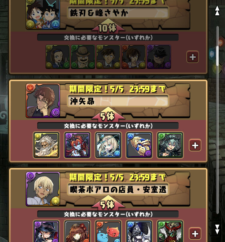 【パズドラ速報】「工藤新一&毛利蘭」「安室透」など交換可能キタ━(゚∀゚)━!!【公式】 2025/4/18 オーガch.-パズドラ攻略まとめ速報 " " 交換弾14体:服部平次&江戸川コナン 交換弾10体:工藤新一&毛利蘭、歩美&元太&光彦、鉄刃&峰さやか 交換弾5体:沖矢昴、安室透、鉄刃 続きを読む Source: オーガch.-パズドラ攻略まとめ速報