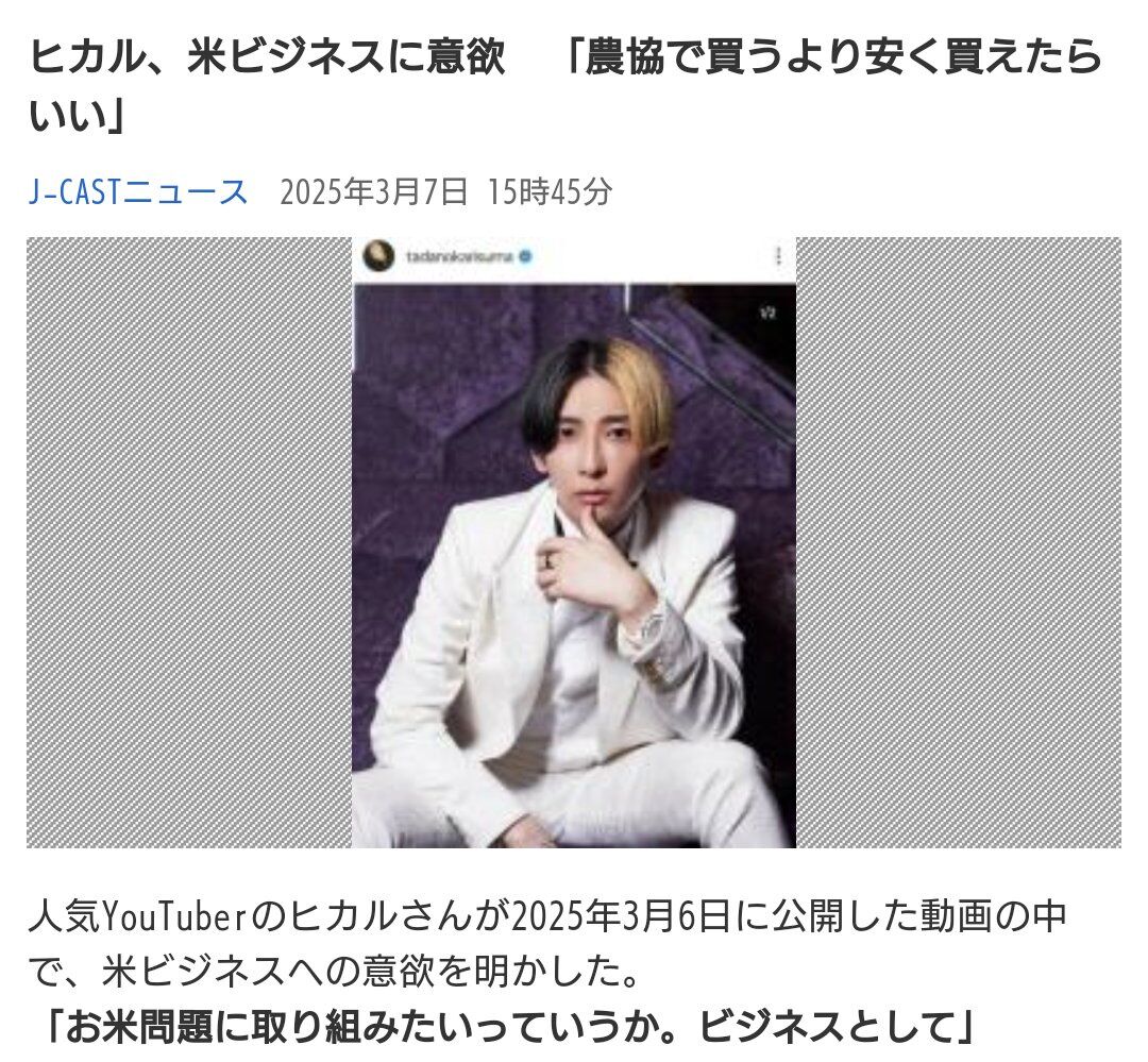 【悲報】ヒカルさん、米の転売を始めてしまう なんと5キロ3980円…… 2025/4/23 ゲーム実況者速報 " " 1: ゲーム実況者速報 2025/04/20(日) 10:20:23.82 ID:SZ/kIeds0 ↓ 続きを読む Source: ゲーム実況者速報
