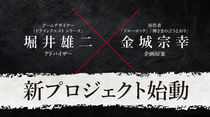 本プロジェクトでは、『ドラゴンクエスト』の生みの親である堀井雄二氏と、『ブルーロック』『神さまの言うとおり』などの原作者として知られる金城宗幸氏が初のタッグ。