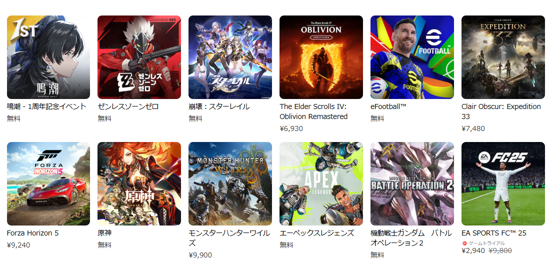 Clair Obscur: Expedition 33 ,480 ←ゲームパスタイトル