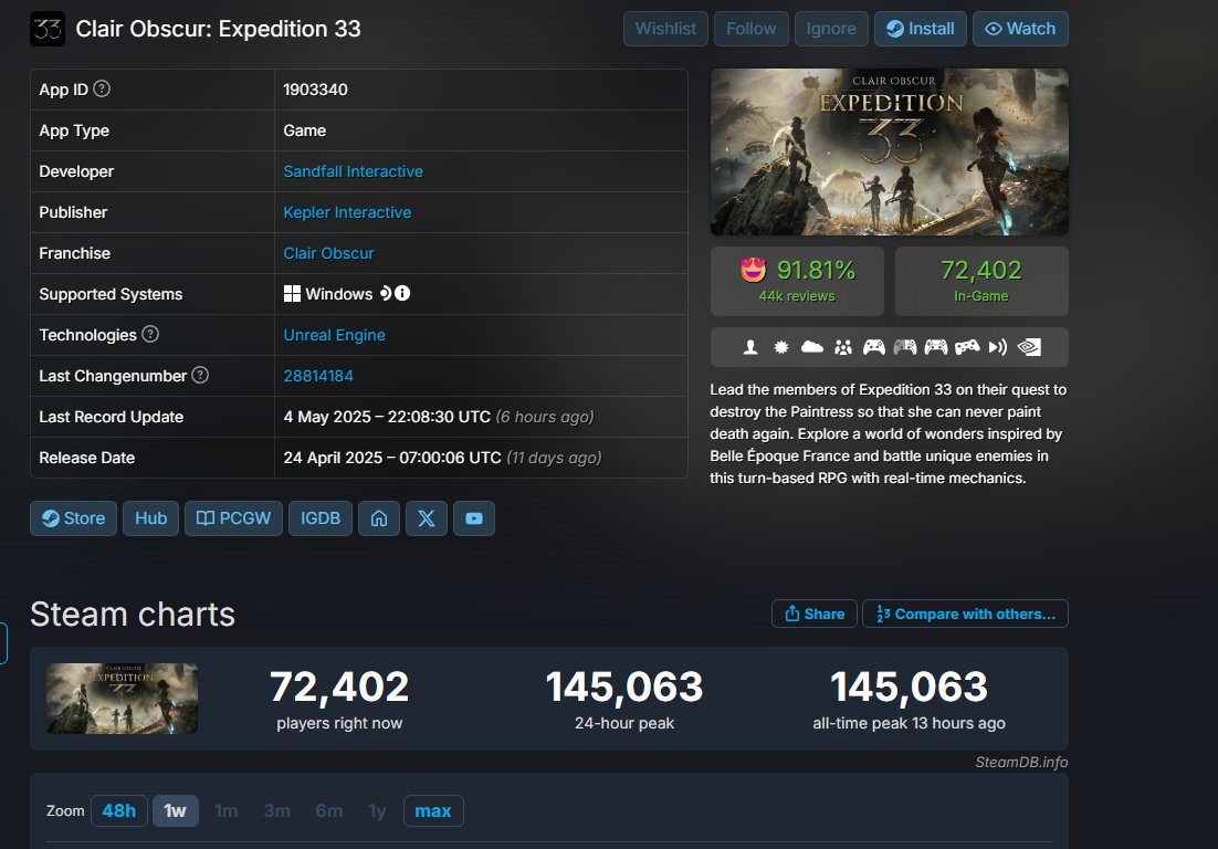 Expedition33さん、RPGなのにSteam同接も好評も爆伸び!!FFが全く相手にならず・・・ 2025/5/6 Y速報 " " 1: 2025/05/05(月) 13:07:46.68 ID:f9/2vDbR00505 15万超えそう、まさに今同接ピークを更新ちうの模様 https://steamdb.info/app/1903340/charts/#1w 続きを読む Source: Y速報