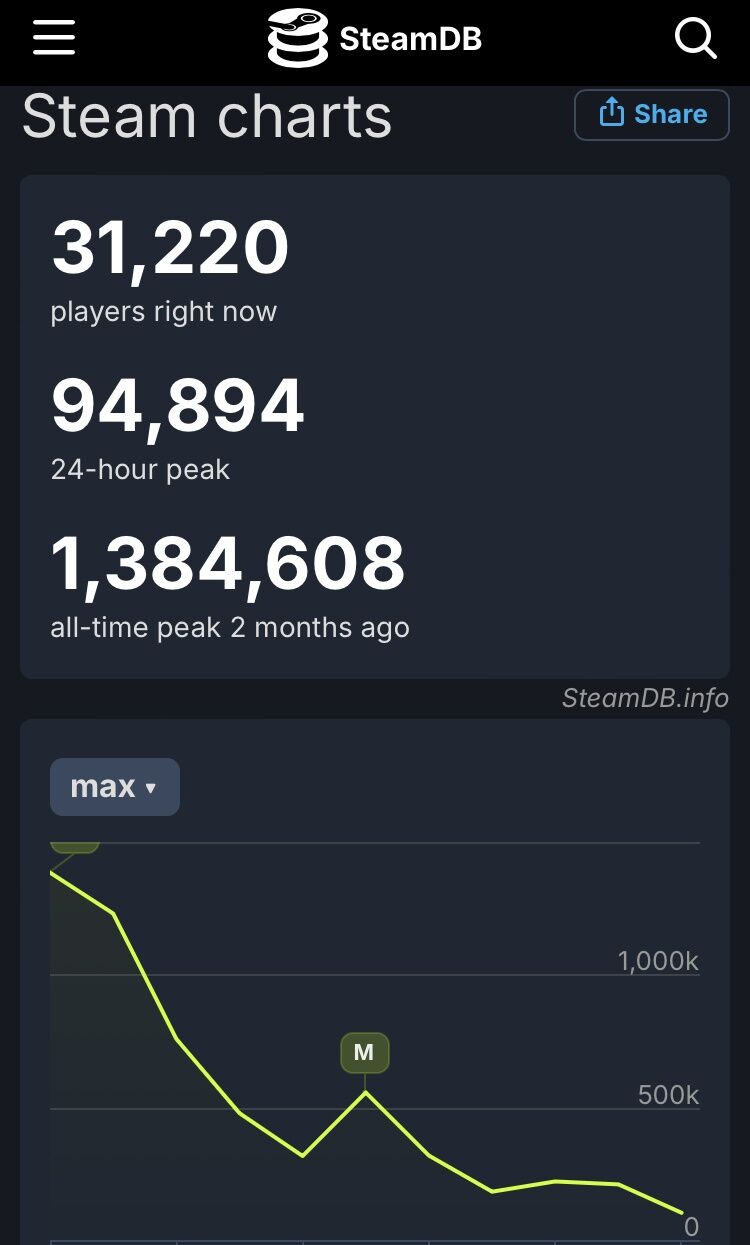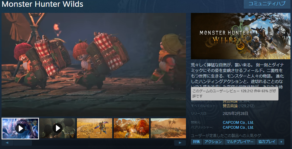 【悲報】モンハンワイルズさん、ついにピーク時の同接が10万を切りsteam評価は賛否両論へ 一体何がいけなかったのか……? 2025/5/7 ゲーム実況者速報 " " 1: ゲーム実況者速報 2025/05/07(水) 11:49:01.40 ID:+wIcwgqJ0 オワタ 続きを読む Source: ゲーム実況者速報