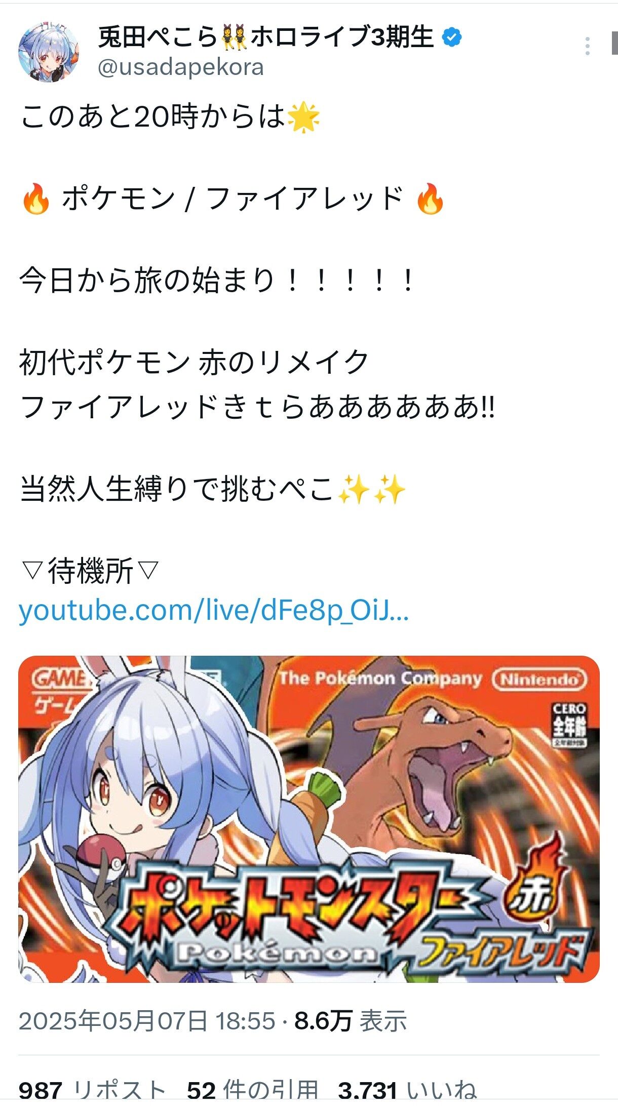 【!?】超人気Vチューバーさん、ポケモン配信が解禁されるwwwwwwwwww 2025/5/8 ゲーム実況者速報 " " 1: ゲーム実況者速報 2025/05/07(水) 19:55:05.942 ID:tmBFAoBa0 続きを読む Source: ゲーム実況者速報