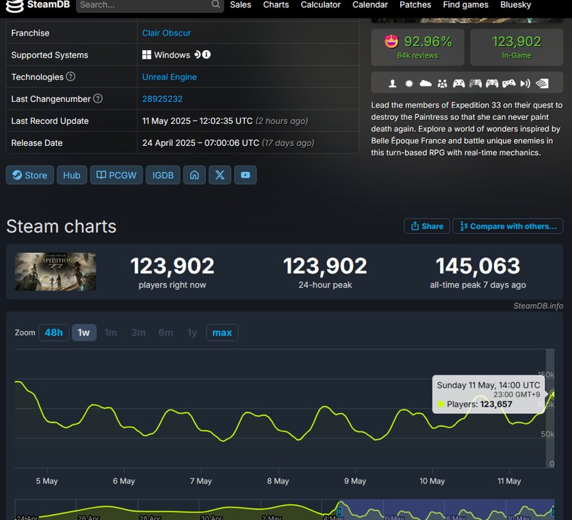 【GOTY確定か】 Expedition33がガチで凄い 発売3週目なのにローンチ並みの同接 2025/5/12 Y速報 " " 1: 2025/05/11(日) 23:33:02.36 ID:QoqswiB30 https://steamdb.info/app/1903340/charts/ 続きを読む Source: Y速報