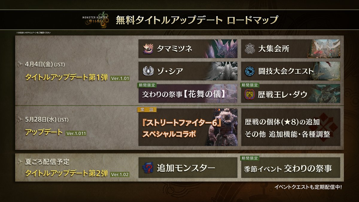 【悲報】モンハンワイルズさん、スカスカのロードマップを公開…… 2025/5/24 ゲーム実況者速報 " " 1: ゲーム実況者速報 2025/05/24(土) 17:24:15.45 ID:ZgYM4mAK0 ●無料タイトルアップデート ロードマップ 夏ごろに無料タイトルアップデート第2弾を配信予定です。詳細に関しましては改めてお知らせいたしますので、今後の情報をお待ちください。 続きを読む Source: ゲーム実況者速報